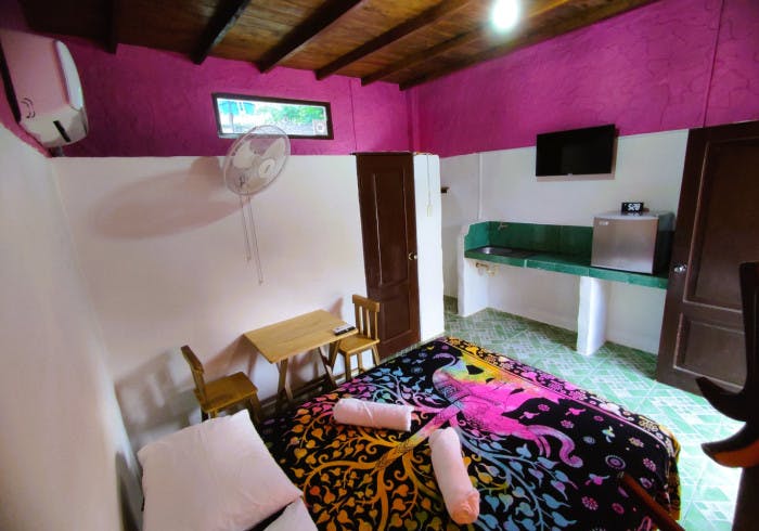 Las habitaciones estándar tienen cama de tamaño completo, AC, WiFi y baño privado