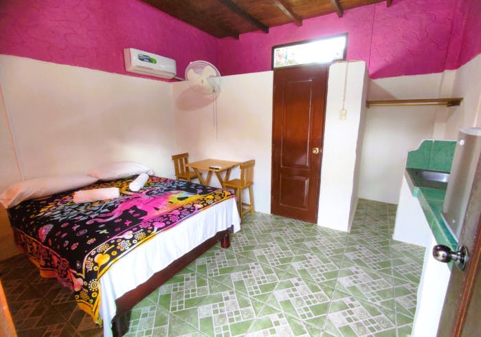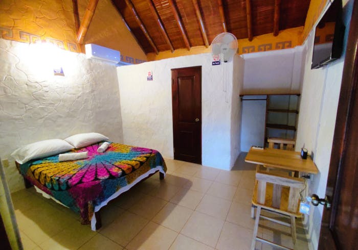 Deluxe Plus have a queen size bed, AC, Smart TV, WiFi, and mini-fridge